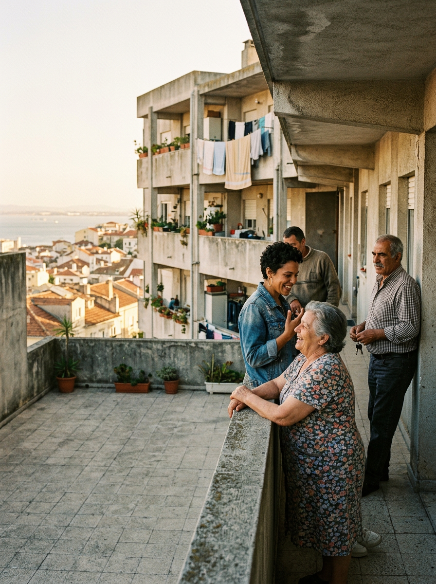 Esse caos contemporâneo contrasta fortemente com um breve e radical experimento do urbanismo português: o Serviço de Apoio Ambulatório Local (SAAL). Lançado em meados dos anos 1970, o SAAL foi concebido para apoiar populações mal alojadas na transformação de seus próprios bairros. Em vez de impor soluções de cima para baixo, o Estado fornecia técnicos especializados para trabalhar lado a lado com os moradores. Juntos, planejavam, protestavam e, em alguns casos, construíam coletivamente os edifícios que iriam habitar. Quando o projeto foi encerrado, em 1976, mais de 41.000 famílias estavam envolvidas num processo que tratava a moradia não como mercadoria, mas como ato cívico coletivo.